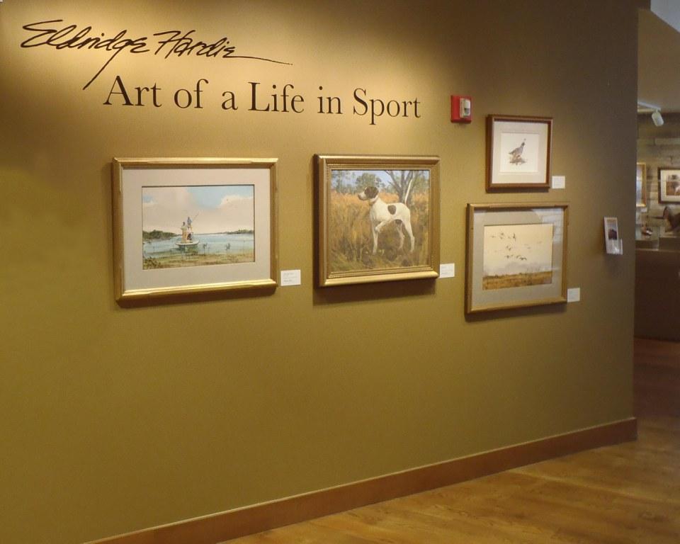 My exhibit Eldridge Hardie-Art of a Life in Sport opened on June 16th. How special is that for me to have 32 of my original paintings along with drawings and what you might call artifacts from my studio so beautifully displayed at The Wildlife Experience? I hadn’t seen many of the paintings for years. It was like a reunion of old friends. I had the great pleasure of giving a slide presentation at an evening reception attended by 132 people about fifty of whom were friends and family. Another reception was held for lenders of the paintings, who with their generous cooperation made the show possible, and for special friends of the museum. Only four of the originals and six limited edition prints are available for purchase, and my signed and out-of-print book is in the gift shop.